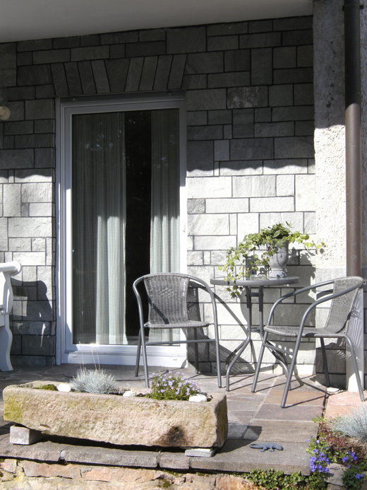 - Exklusive Wohnküche mit ebenerdiger Ostterrasse und Gartenmöbeln