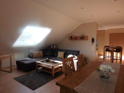 (gemütlicher Wohnbereich und rechts zur Küche)